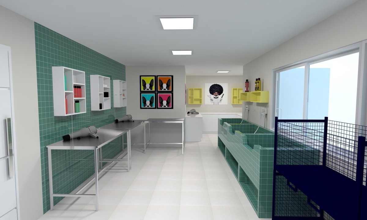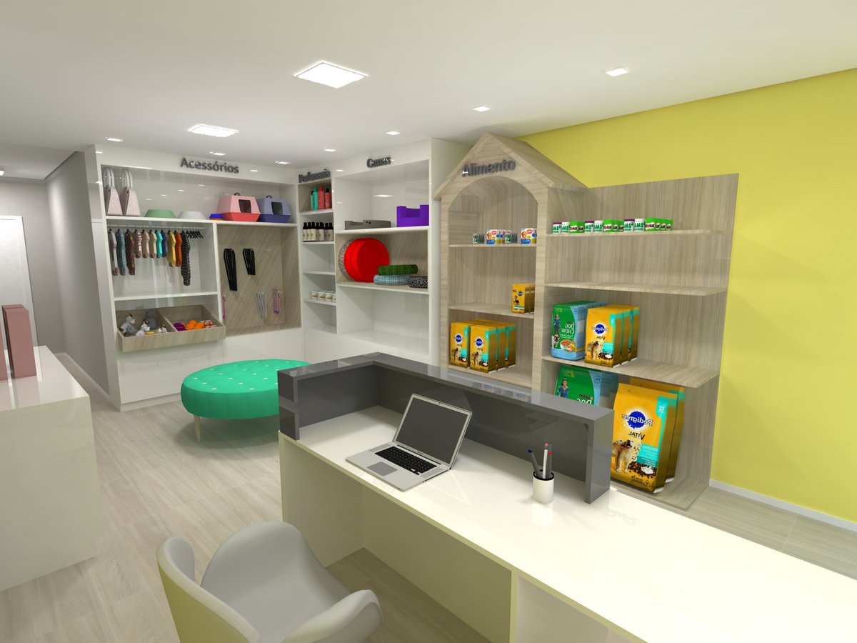 Projeto para pet shop e clínica veterinária. Reforma de casa antiga para transformar o espaço respeitando normas do Conselho de Veterinária, Vigilância Sanitária, além de normas construtivas. Usado conceitos de neurociência na área de vendas e higiênização dos animais, considerando que os colaboradores passam muito tempo neste espaço.